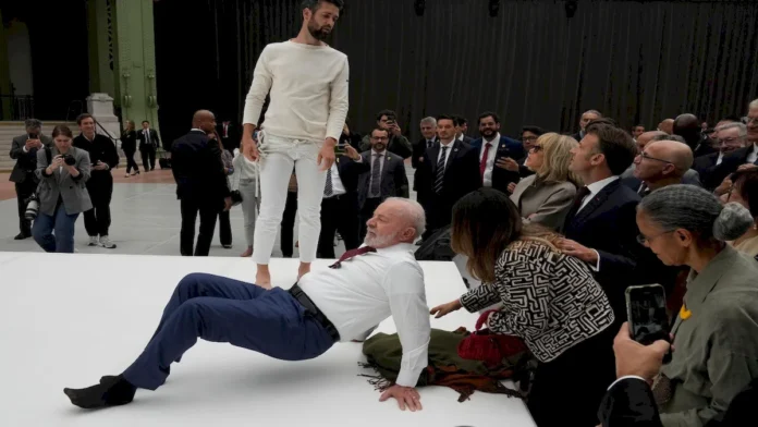 Na mesma semana em que o Brasil foi sacudido por mais um escândalo envolvendo o INSS, o presidente Luiz Inácio Lula da Silva decidiu virar atração em Paris. Em um evento da exposição “Nosso Barco Tambor Terra”, Lula tirou os sapatos, o paletó e tentou realizar uma acrobacia no chão do Grand Palais. A cena, capturada por diversas câmeras, gerou risos do presidente francês Emmanuel Macron, mas também indignou muitos brasileiros que acompanham as graves crises internas do país.
